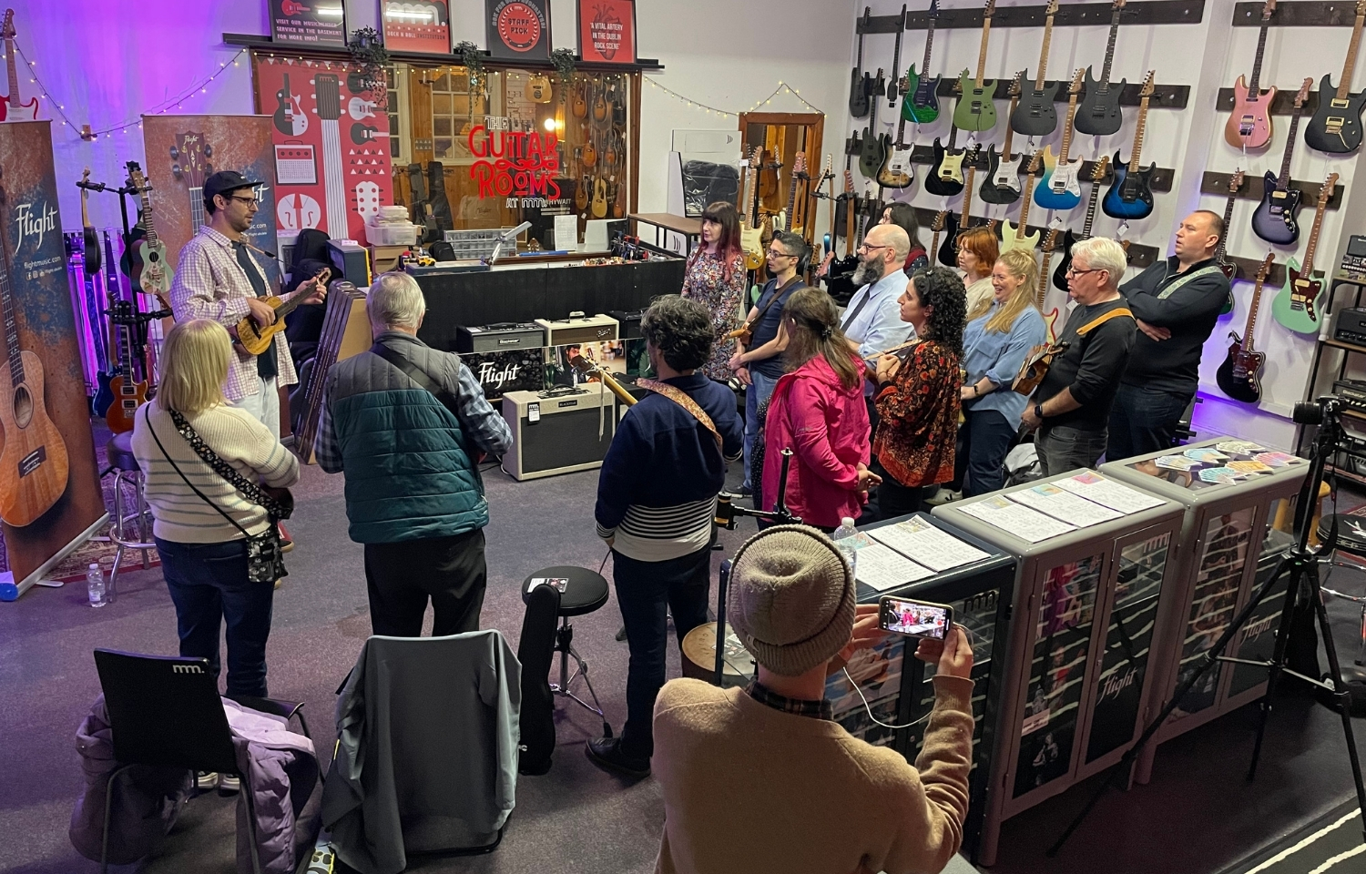 From there, the tour continued to Music Maker in Dublin, where Vasko delivered his popular “Become a Ukulele Karaoke Machine” clinic. The workshop focused on helping players strum confidently while singing, lead group jams, and unlock the joy of playing music socially. The room was filled with great energy, laughter, and plenty of strumming.
