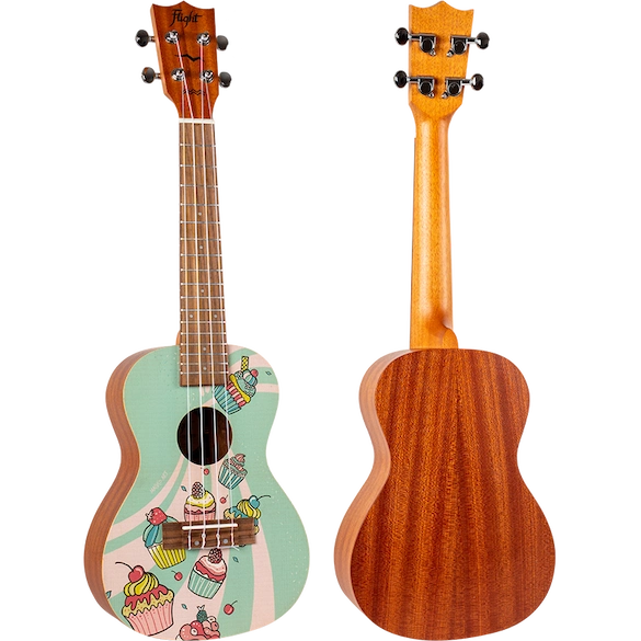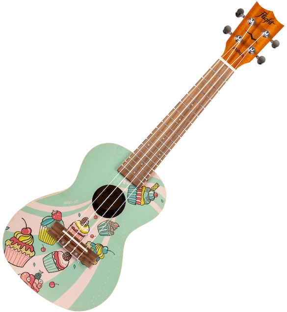 The Flight AUC-33 Cupcake Ukulele features a tasty cupcake design by the talented Argentinian artist, Macuco.art. Cupcakes are trendy and a favorite treat on the metropolitan scene. They are shareable, are the perfect size for a dessert, and can be used for every occasion. Join in on the fun with the AUC-33 Cupcake Ukulele, which is the perfect instrument for any celebration–or the perfect gift for any celebration!