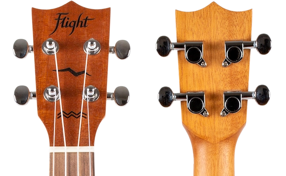 Headstock design is an integral part of our identity. All Flight ukuleles feature a carefully-designed headstock fitted with geared tuners that will always stay in tune.