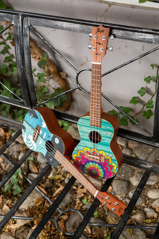 At Flight, we love to use colors and attractive designs, so we decided to explore adding incredible designs to our ukuleles. These ukuleles combine the worlds of fashion and music. We haven’t sacrificed quality for the looks or taken any shortcuts in creating these instruments. The result is astonishing: gorgeous ukuleles with a warm and strong sound that won’t break the bank. And like all Flight ukuleles, every Art Series ukulele includes a fantastic Flight gig bag!