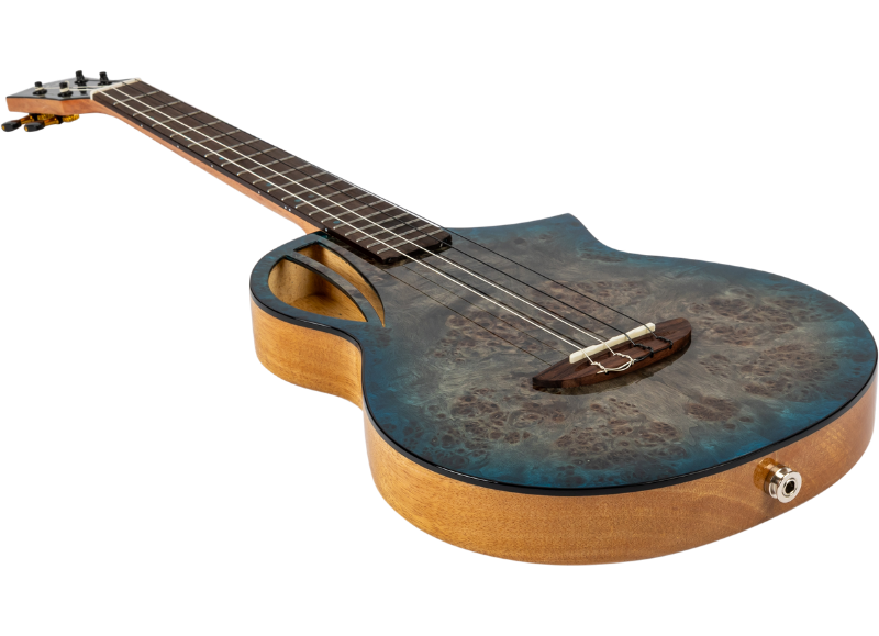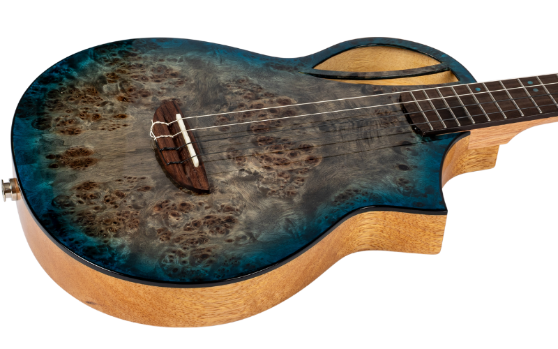 The Aviator Galaxy features a solid poplar top paired with solid mango back and sides. Poplar offers a balanced and responsive tone with clear projection, while mango adds richness and depth to the sound. Together, these woods create a lively and expressive voice that feels full, clear and well balanced. The rosewood fingerboard ensures smooth playability, while the okoume neck adds strength and stability to the instrument.