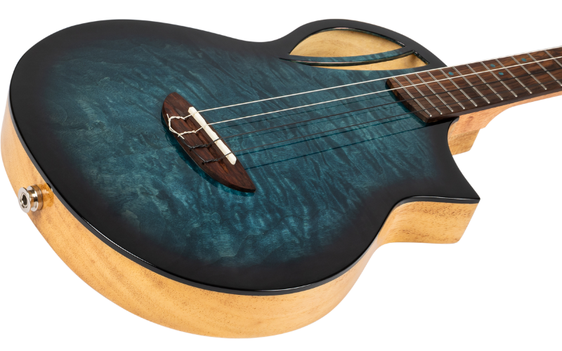 Electro-acoustic baritone solid quilted maple top ukulele