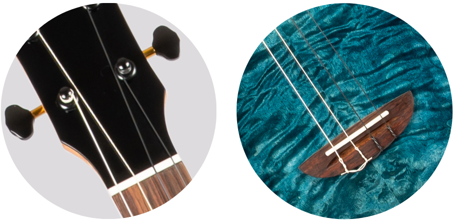 The Flight Aviator QM comes with a bone nut and compensated saddle, allowing for vibrations to efficiently transfer from the string to the soundboard.