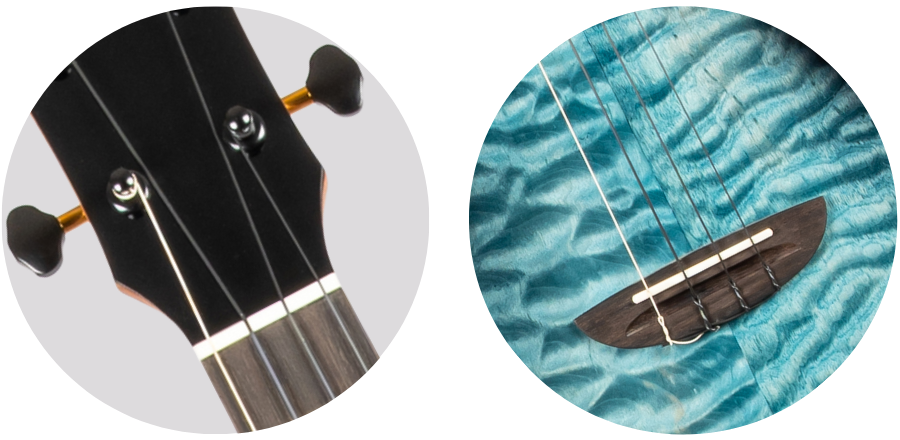 The Flight Aviator QM comes with a bone nut and compensated saddle, allowing for vibrations to efficiently transfer from the string to the soundboard.