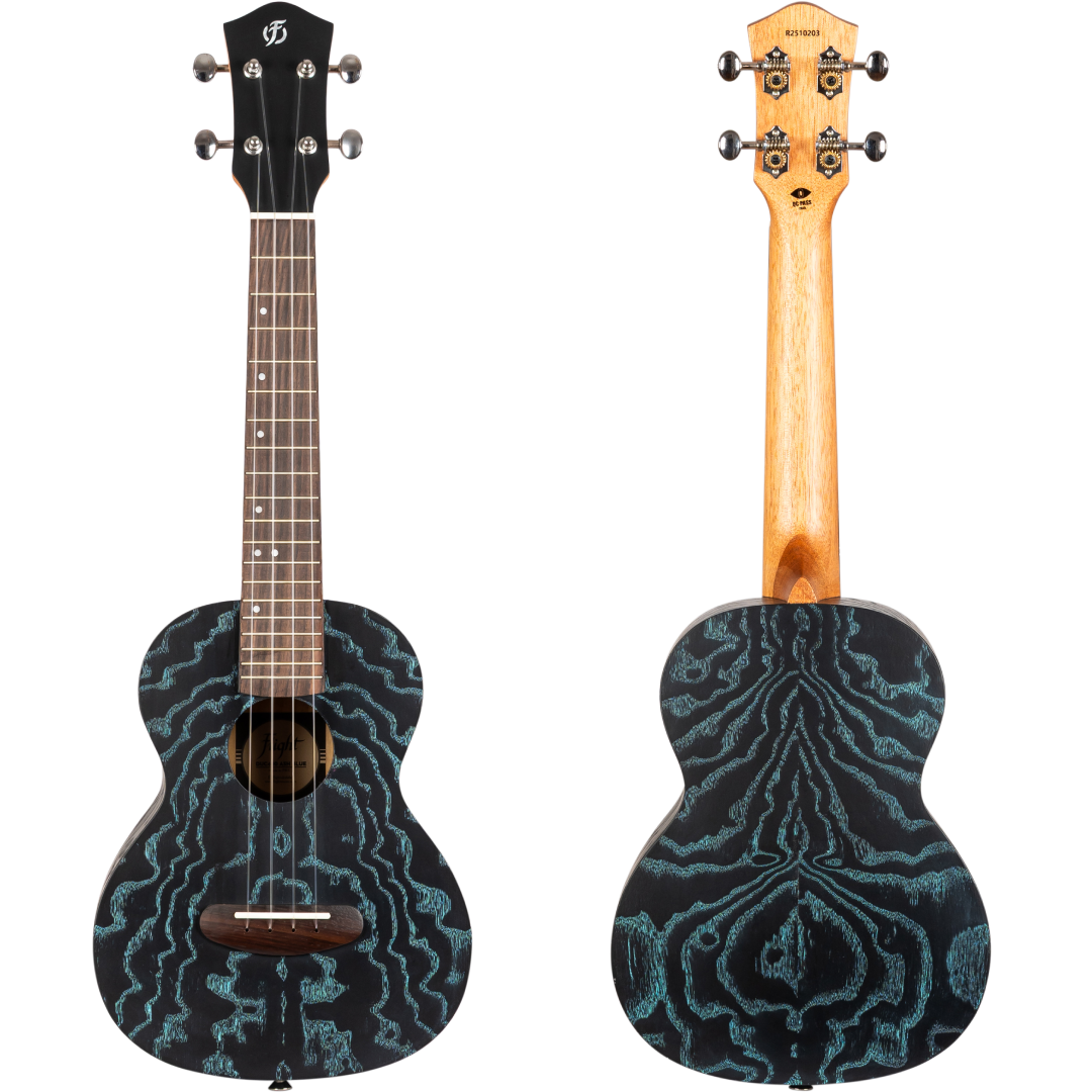 Bold looks, smooth playability, and great value come together in the Flight DUC400 Ash. With its ash body and stained finish that brings out the wood’s natural swirling patterns, this concert ukulele is designed to turn heads without turning your budget upside down. Choose from Black, Purple, or Blue and let your style shine.