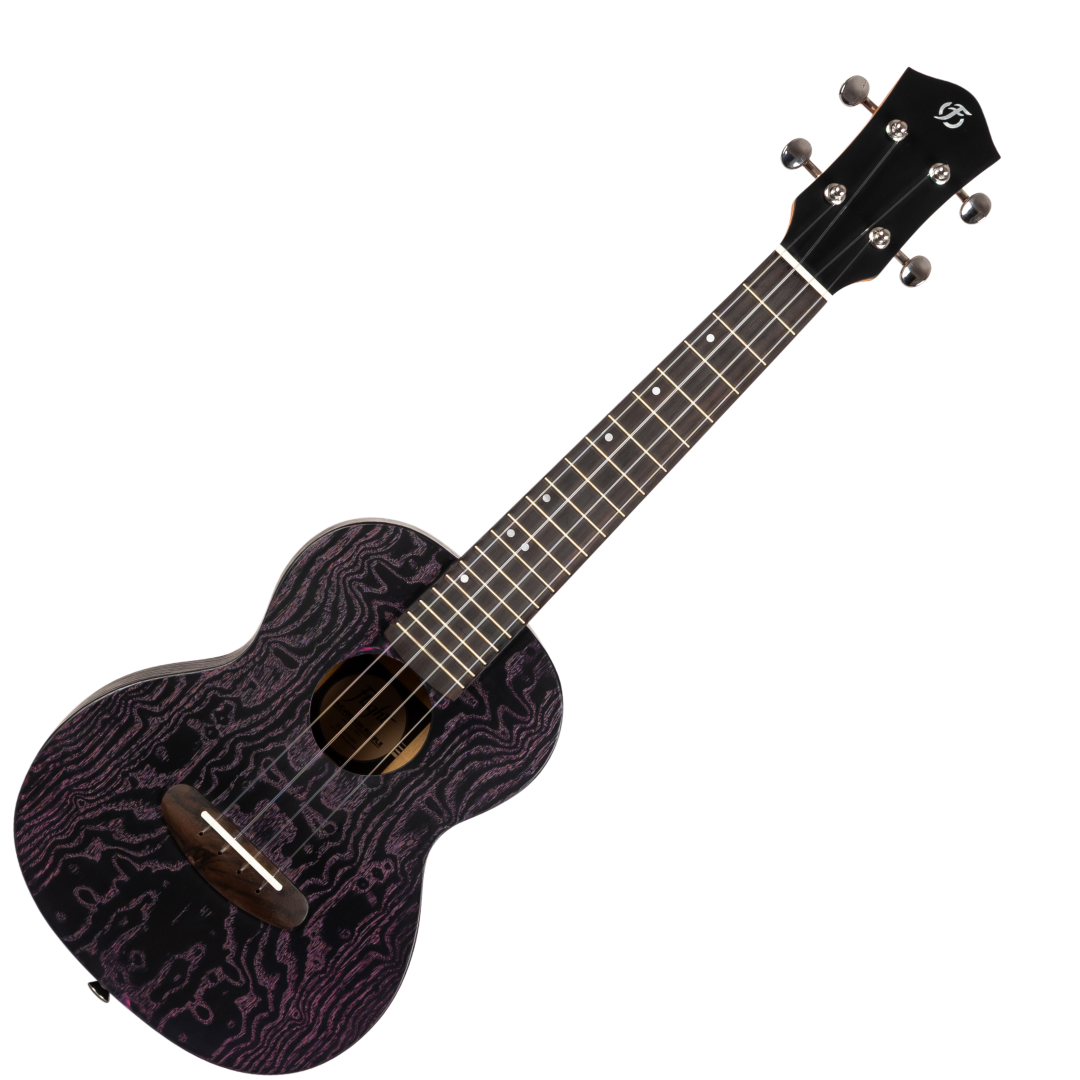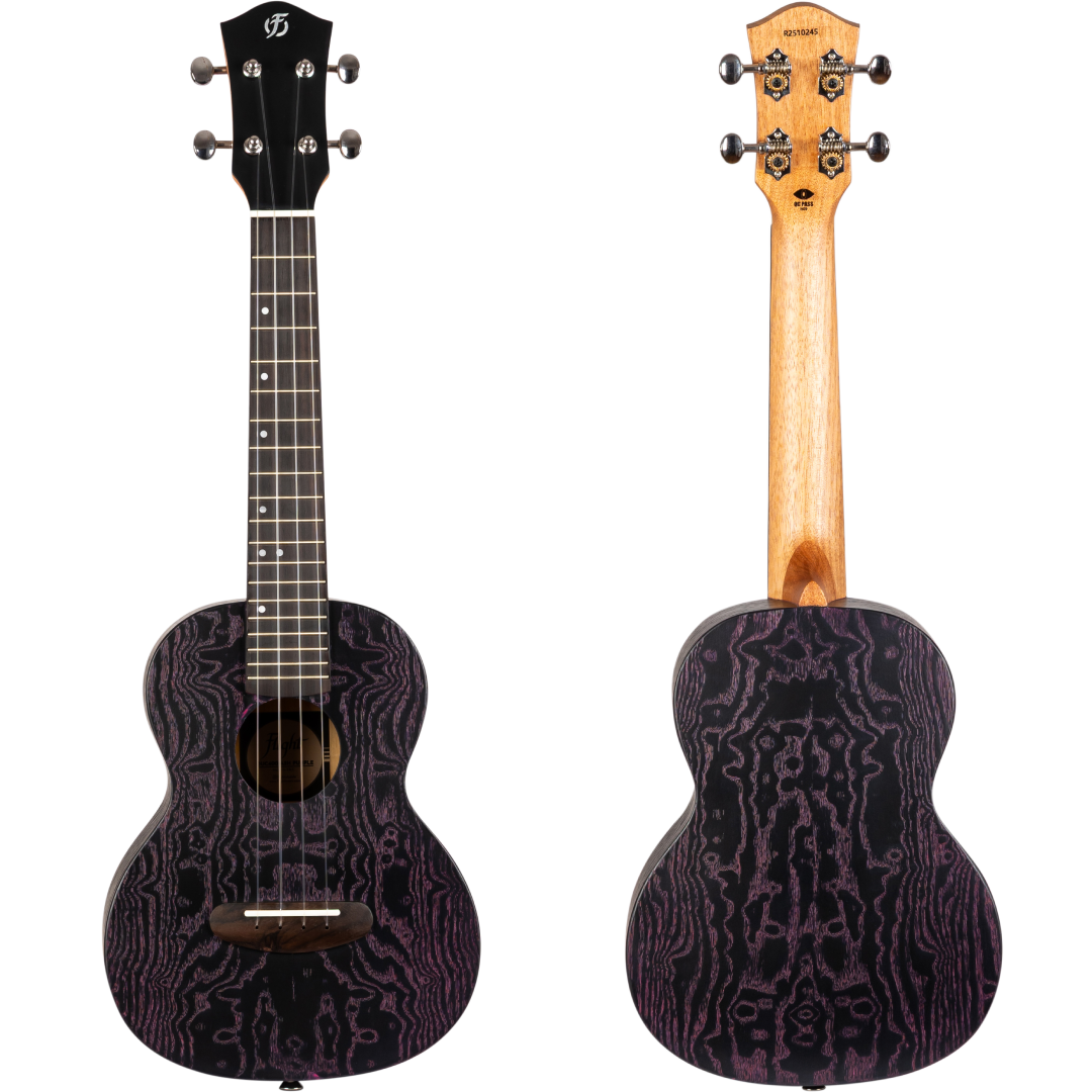 Bold looks, smooth playability, and great value come together in the Flight DUC400 Ash. With its ash body and stained finish that brings out the wood’s natural swirling patterns, this concert ukulele is designed to turn heads without turning your budget upside down. Choose from Black, Purple, or Blue and let your style shine.