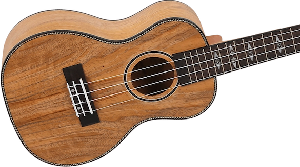 Premium Features: Arched back, Chrome Die-Cast Geared Tuners, Inlaid White-Black-White Rosette, Aquila Super Nylgut Strings, Side Dots.