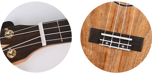 The nut may seem to be a small component, but it plays a critical role in the quality of the sound of an instrument. The nut and saddle of the DUC450 are made from bone (not from plastic). This is just one of the details that makes this ukulele truly special.