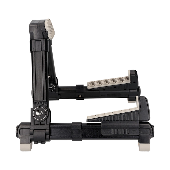 Flight offers a growing selection of affordable ukulele accessories, such as this black ukulele stand. Made of lightweight aluminum, and able to collapse for travel, the stand is the perfect accessory to bring along so that you can store your ukulele safely when you take a break from playing. The rubber feet on the stand will keep it from moving, and the rubber pads on the stand will keep your ukulele in its place until you are ready to play again.