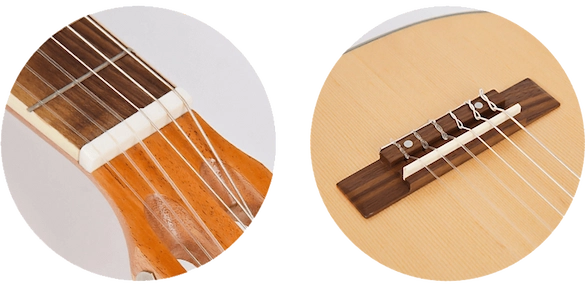 The nut may seem to be a small component, but it plays a critical role in the quality of the sound of an instrument. The nut and saddle of the GUT350 are made from bone (not from plastic). This is just one of the details that makes this guitarlele truly special.