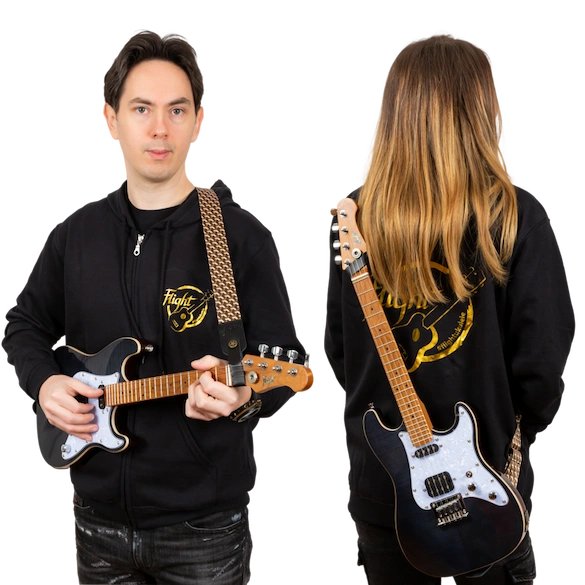 The inspiration for Flight “merch” came directly from our involvement at trade shows and ukulele festivals—we needed some Flight-branded apparel for our team. We never realized that our Flighters would want some merch, too! Flight is now offering “merch,” including these great sweatshirts. Black and gold were a natural choice for our merch because it looks clean and classy at the same time.