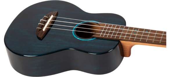 Flight is pleased to introduce a new version of one of its favorite Princess models, the Flight Iris Tinta Concert. The Iris Tinta is an all-solid mahogany ukulele with a glossy finish that brings a cool, refined, contemporary feel to the Iris lineup. The Iris Tinta features the same beloved Iris shape and feel with the rich tone and beautiful natural grain of mahogany. You will love this transparent blue version of the Iris Tinta!