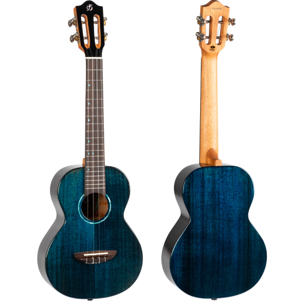 Flight is pleased to introduce a new version of one of its favorite Princess models, the Flight Iris Tinta Tenor. The Iris Tinta is an all-solid mahogany ukulele with a glossy finish that brings a cool, refined, contemporary feel to the Iris lineup. The Iris Tinta features the same beloved Iris shape and feel with the rich tone and beautiful natural grain of mahogany. You will love this transparent blue version of the Iris Tinta!