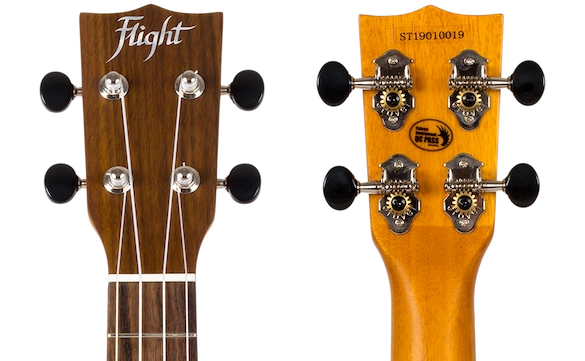 The Flight LUS5 is made of solid mahogany. Mahogany is a hardwood which has been used to make quality musical instruments for centuries. Its colour can vary a fair amount, from a pale pinkish brown to a darker reddish brown, and it tends to darken with age. Solid mahogany packs a punch unmatched to any other instrument, which is why it is perfect for a vintage style ukulele like our LUS5.