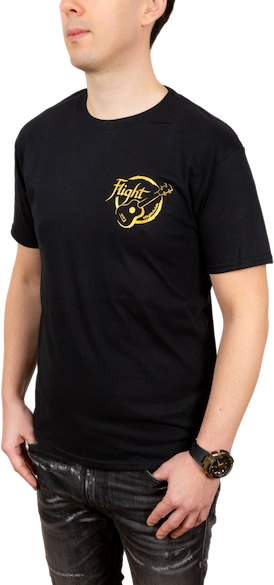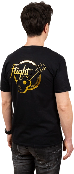 The inspiration for Flight “merch” came directly from our involvement at trade shows and ukulele festivals—we needed some Flight-branded apparel for our team. We never realized that our Flighters would want some merch, too! Flight is now offering “merch,” including these great t-shirts. Black and gold were a natural choice for our merch because it looks clean and classy at the same time.