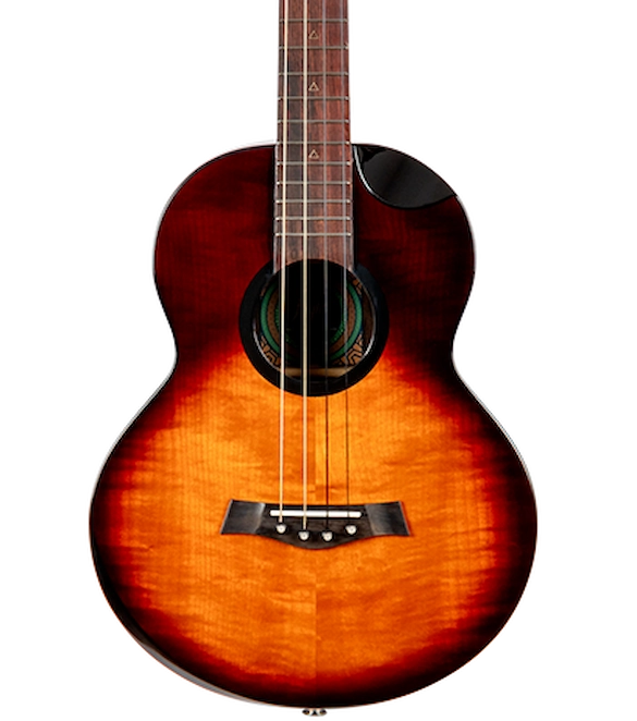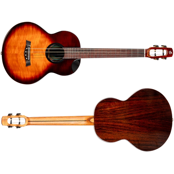 Premium Features: Baritone scale, Truss Rod, solid flamed maple top, solid rosewood body, sunburst gloss finish, rosewood fretboard, dyed maple rosette, unique headstock, pin bridge system, compensated saddle, Flight humidifier, Flight custom baritone strings.