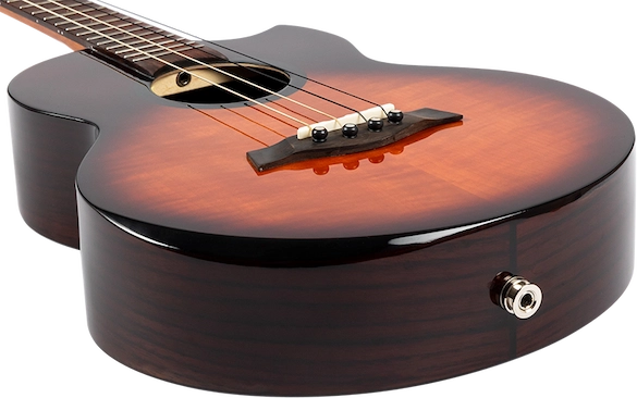The controls for the active pickup are mounted underneath the sound hole, meaning that a cavity does not have to be created on the side of the ukulele for the pickup. The Double C1U is easy to use, and sounds great! See the FAQ on our website for more information about the use of a Double C1U.