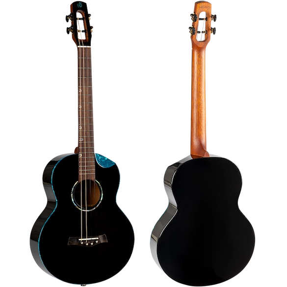 Baritone ukuleles continue to grow in popularity throughout the world, and we wished to offer our excellent Nighthawk model in the baritone scale. At Flight, we love pushing the boundaries of ukulele design, and the Nighthawk Baritone is no exception! Inspired by the popular features of our Spirit and Mustang models, the Nighthawk Baritone brings the same bold and sophisticated look, now in a larger scale. With eye-catching details like the blue pearloid cutaway and binding, square off-set fretboard markers, and a black finish, this baritone uke is both a visual standout and a high-performance instrument.