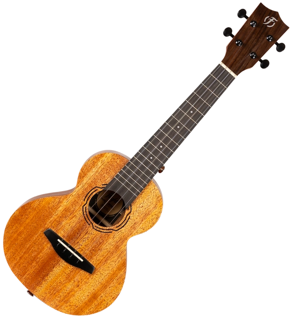 We use a solid mahogany top for the NUC500 Concert Ukulele, paired with laminate mahogany for the back and sides. Mahogany is a dense hardwood known for its straight grain and fine, even texture. Its tonal qualities produce a rich, warm sound with excellent sustain and balance. The solid top enhances resonance and projection, giving the NUC500 a full-bodied and dynamic tone. As with all our ukuleles, the rosettes are drawn by hand and engraved by laser.