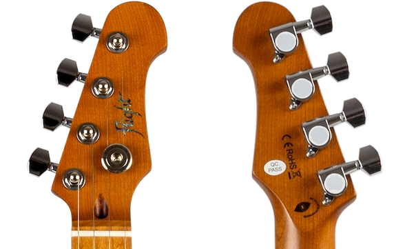 In the tradition of solid body electric guitars, the Flight Pathfinder features a neck made of roasted maple, which is strong, stable, and looks great!