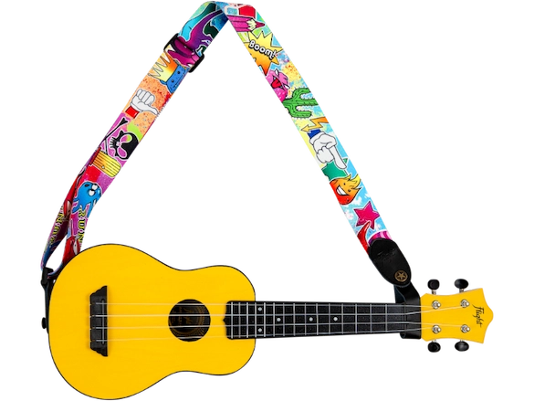 The strap adjusts in length and features high quality leather strap ends and a leather tie-back. Flight wants you to be able to focus on being the best musician you can be, and a strap can help you with that process. Ukulele straps look great, offer peace of mind, provide comfort, and liberate your chording hand to be able to move up and own the neck without worrying about how to hold and support your ukulele.
