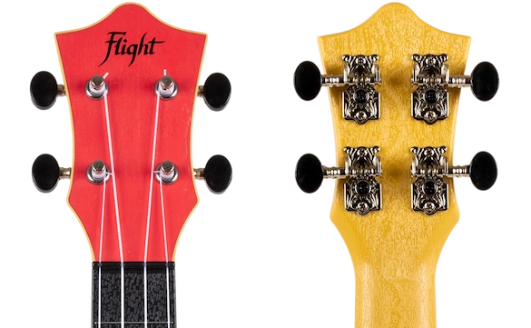 All Flight ukuleles feature a carefully-designed headstock fitted with geared tuners that make it easy to keep your ukulele in tune. The headstock veneer is made of linden and matches the color of the top.