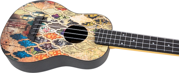 The Flight Concert Travel Ukulele is also available in various colors and prints.