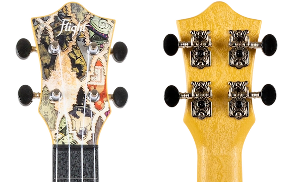 All Flight ukuleles feature a carefully-designed headstock fitted with geared tuners that make it easy to keep your ukulele in tune. The headstock veneer is made of linden and matches the soundboard.