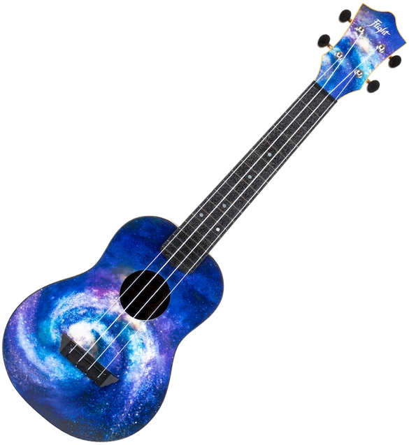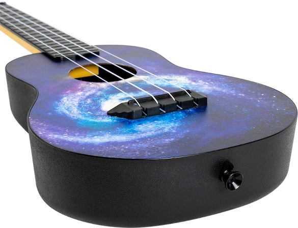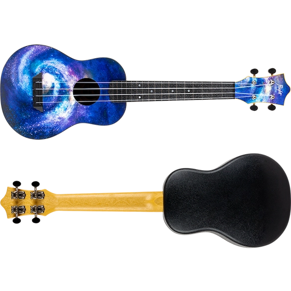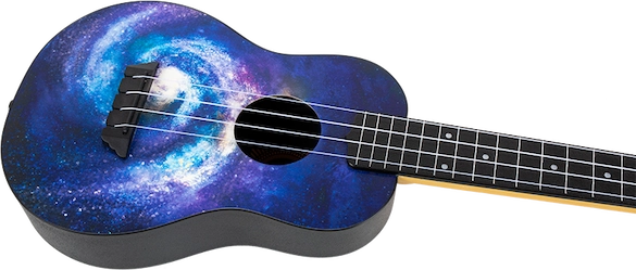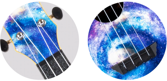 Premium Features: Space Print, Zero Fret, Wooden Top, Arched back, Open Geared Tuners, ABS Fretboard, Side Dots, Strap Button, Aquila Strings.