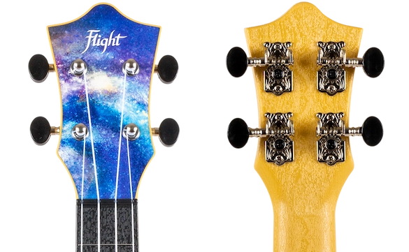 All Flight ukuleles feature a carefully-designed headstock fitted with geared tuners that make it easy to keep your ukulele in tune. The headstock veneer is made of linden and matches the soundboard.