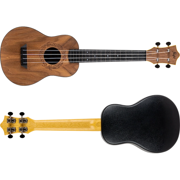 Concert Travel Ukulele with Laminate Walnut Soundboard with Salamander Rosette