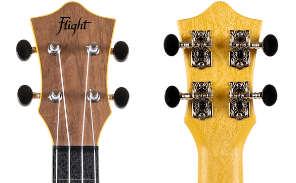 All Flight ukuleles feature a carefully-designed headstock fitted with geared tuners that make it easy to keep your ukulele in tune. The headstock veneer is made of linden and matches the soundboard.