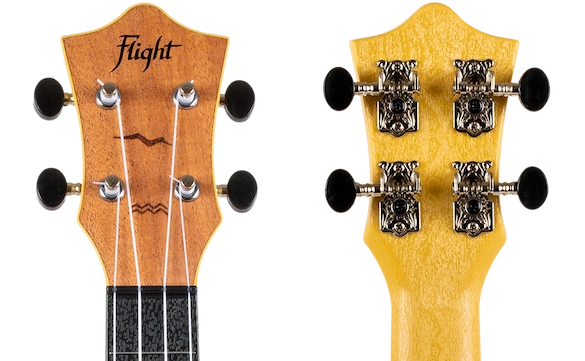 All Flight ukuleles feature a carefully-designed headstock fitted with geared tuners that make it easy to keep your ukulele in tune. The headstock veneer is made of linden and matches the soundboard.