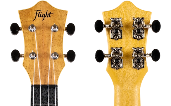All Flight ukuleles feature a carefully-designed headstock fitted with geared tuners that make it easy to keep your ukulele in tune. The headstock veneer is made of linden and matches the soundboard.