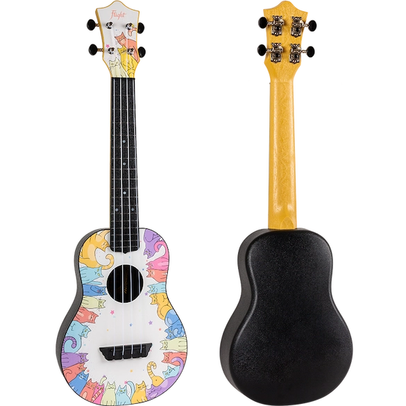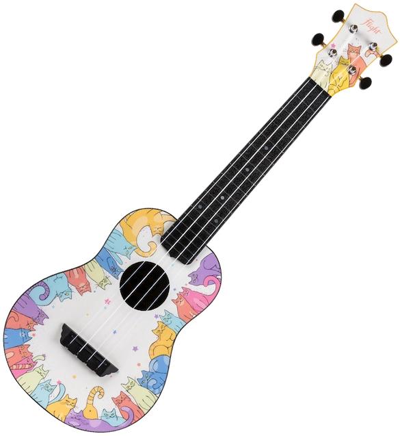 Let the hills come alive with the sound of mewsic with the TUC-KITTY, the purrfect instrument for any cat lover! The TUC-KITTY is like all other Flight Travel Ukuleles, offering great sound, playability, durability, and value. Flight Concert Travel Ukuleles (TUC) have a slightly larger body and a slightly longer fretboard than the Soprano Travel Ukulele, resulting in a larger sound–all the great qualities of the TUS, but bigger. Players with larger hands will enjoy the extra room on the fretboard.