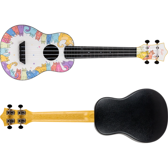The TUC-KITTY Travel Ukulele includes a linden wood top with an ABS body, neck, fretboard and bridge. The result is a ukulele with low action that is easy to clean and maintain. Want a ukulele that shows you are a cat lover while still being tough, sounding great, and plays well? If so, check out the Flight TUC-KITTY Ukulele at your local Flight dealer!