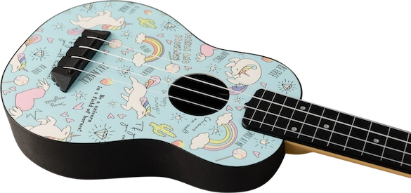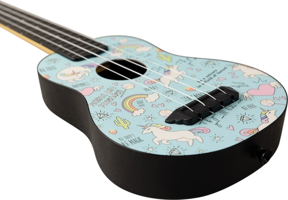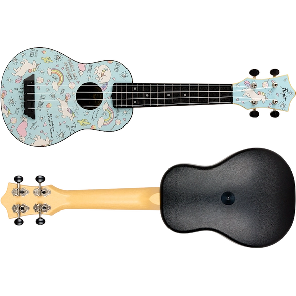 Unicorns and ukuleles… a magical combination! Presenting our TUS-40 Unicorn Travel Ukulele. The TUS-40 Unicorn is a unique and charming uke that features a beautiful rainbow and unicorn design on the soundboard and headstock. With a body built unapologetically from ABS plastic and a linden wood top, the sound quality and durability of this ukulele will blow you away. This uke is a must for the unicorn loving ukulele player in your life!