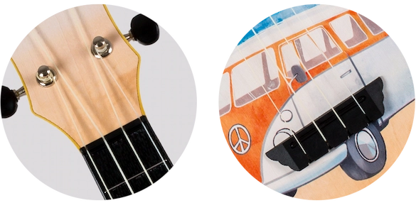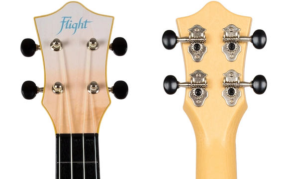 Headstock design is an integral part of our identity. The headstock veneer is made of linden to match the top. All Flight ukuleles feature a carefully-designed headstock fitted with geared tuners that will always stay in tune.