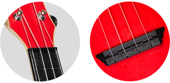 The neck and fingerboard of the TUS35 are made from ABS plastic. It is a perfect solution for entry class ukuleles, since it is not prone to any weather changes. You will never get a sharp fret or bent neck in any of our Travel ukuleles. The neck surface imitates the wood pattern, to avoid a feeling of cheap plastic.