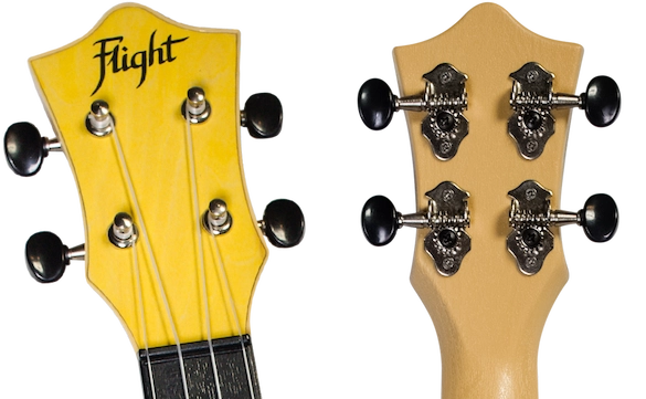 Headstock design is an integral part of our identity. The headstock veneer of TUS35 is made of linden and matches the color of the top. All Flight ukuleles feature a carefully-designed headstock fitted with geared tuners that will always stay in tune.