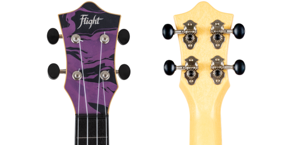 Headstock design is an integral part of our identity. The headstock veneer of TUS40 is made of linden and matches the print of the top. All Flight ukuleles feature a carefully-designed headstock fitted with geared tuners that will always hold their tuning.