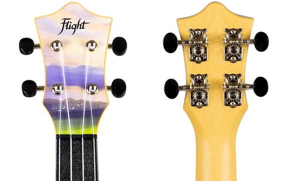 Headstock design is an integral part of our identity. The headstock veneer of TUS40 is made of linden and matches the print of the top. All Flight ukuleles feature a carefully-designed headstock fitted with geared tuners that will always hold their tuning.