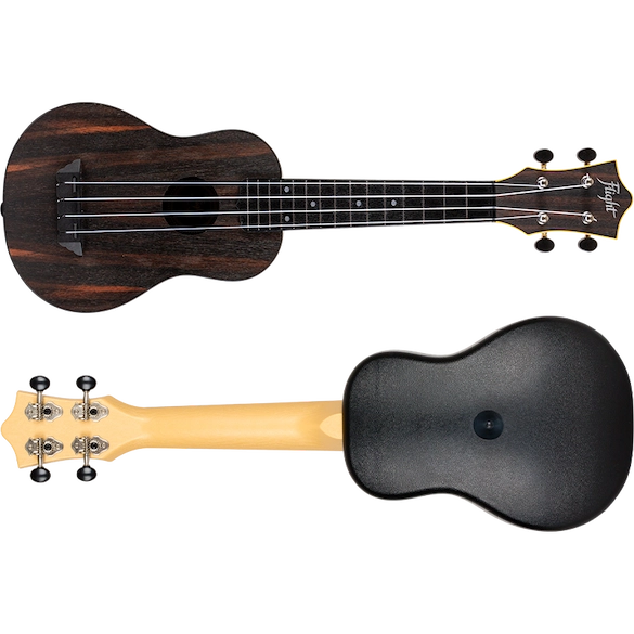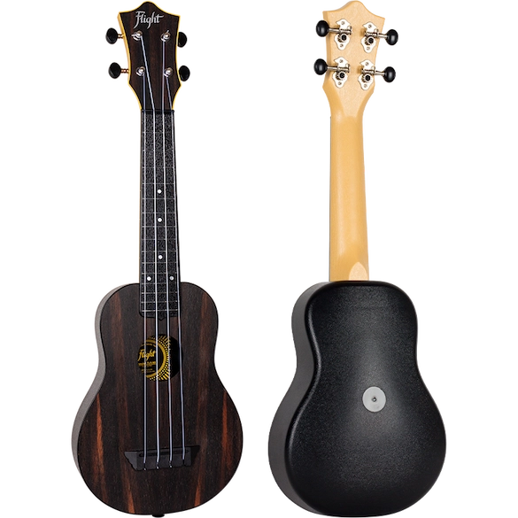 We generally offer our travel series ukuleles with cool colors or stunning graphic designs–but the Flight TUS55 Amara Soprano Travel Ukulele offers a nod to classical ukulele design through the use of laminate amara. Some call this wood ebony, but we call it amara. It is a wood the is full of darkness and exciting wood grain. It has a deep, full, mysterious tone.