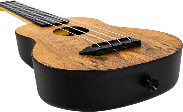 The neck and fingerboard of this ukulele are made from ABS plastic. This is a perfect solution for entry class ukuleles, since it is not prone to any weather changes. You will never experience a sharp fret or bent neck on our Travel ukuleles. The neck features a wooden texture, which helps the instrument to feel unlike a plastic ukulele as you play it.