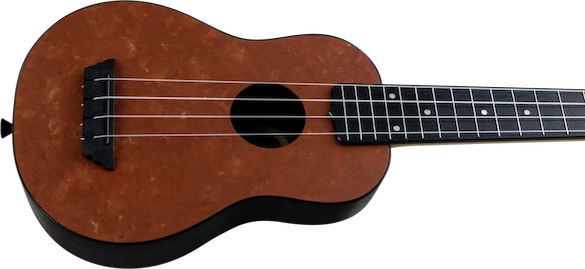 The neck and fingerboard of this ukulele are made from ABS plastic. This is a perfect solution for entry class ukuleles, since it is not prone to any changes in the weather. You will never experience a sharp fret or bent neck on our Travel ukuleles. The neck features a wooden texture, which helps the instrument to feel unlike a plastic ukulele as you play it.