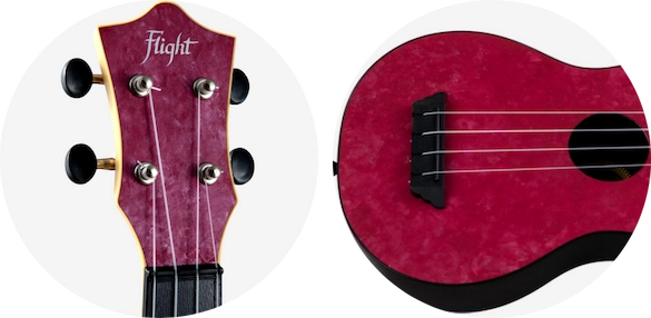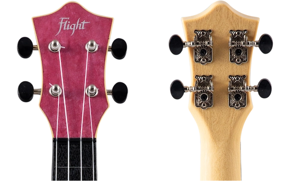 Headstock design is an integral part of our identity. The headstock veneer of TUS65 is made of linden and matches the color of the top. All Flight ukuleles feature a carefully-designed headstock fitted with geared tuners that will always hold their tuning.
