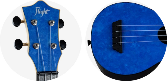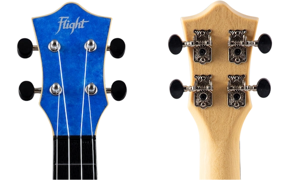 Headstock design is an integral part of our identity. The headstock veneer of TUS65 is made of linden and matches the color of the top. All Flight ukuleles feature a carefully-designed headstock fitted with geared tuners that will always hold their tuning.