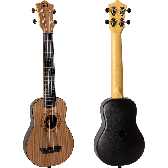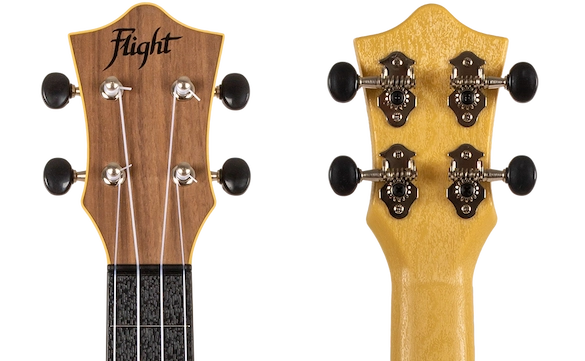 Headstock design is an integral part of our identity. The headstock veneer is made of walnut and matches the top. All Flight ukuleles feature a carefully-designed headstock fitted with geared tuners that will always stay in tune.