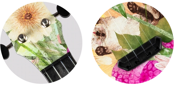 The Flight Ultra Soprano Ukulele is made of polycarbonate reinforced plastic, welded together with an ultrasonic process. The ukulele has an ultra-thin lattice-braced soundboard, creating one of the loudest plastic-based ukuleles on the market.