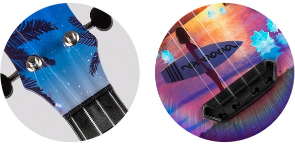 Headstock design is an integral part of our identity. Flight is often recognized for our travel ukuleles, and the headstock of the Flight Ultra Soprano Travel Ukulele is meant to be reminiscent of the headstock design of the travel series. All Flight ukuleles are fitted with smooth operating, high quality geared tuners.
